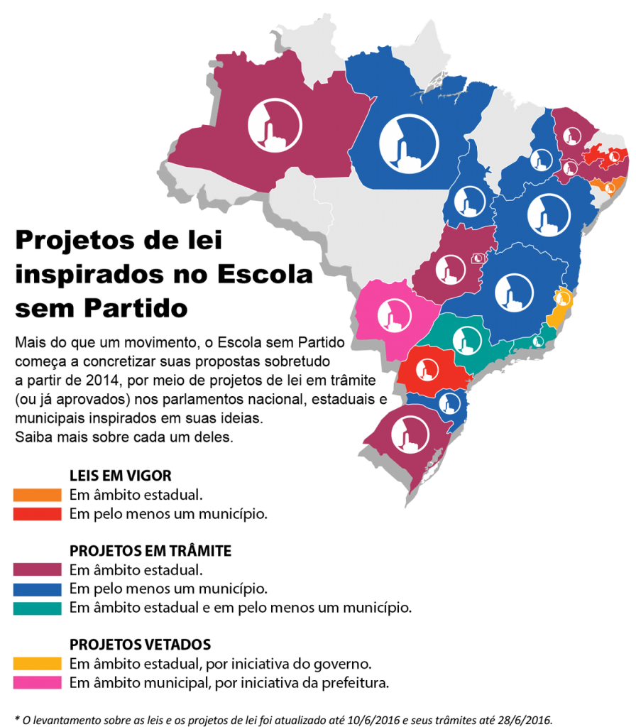 Analise com atenção as informações da reportagem acima, relacione-as com os dados do mapa temático que vem na sequência e assinale a alternativa ERRADA sobre o “Escola Sem Partido”.