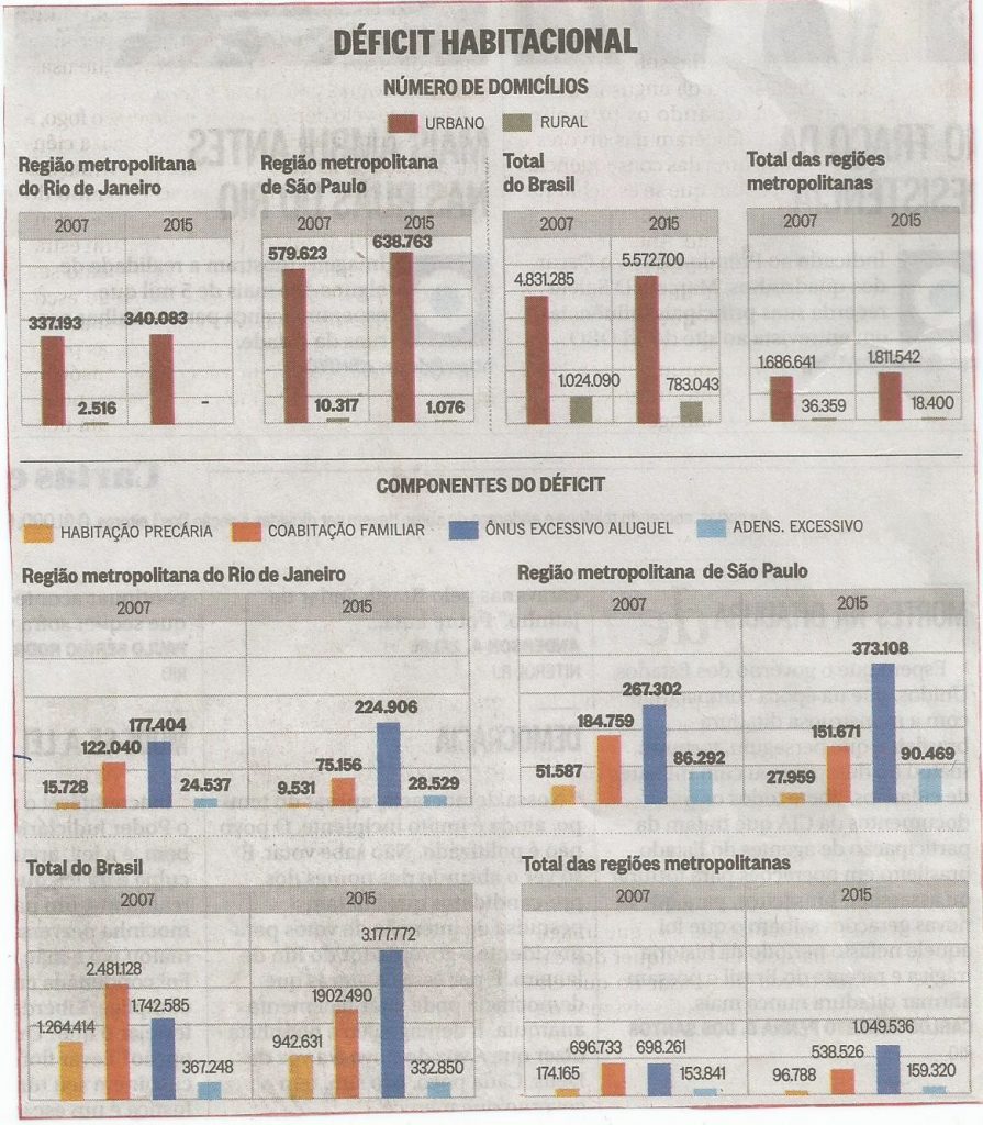 d) No Brasil como um todo, a coabitação familiar continua sendo o principal responsável pelo déficit habitacional, segundo o IBGE.