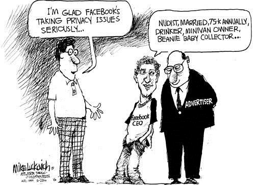c) As duas primeiras charges colocam em suspeição a política de privacidade adotada pelo Facebook nos últimos anos.