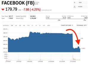 Os efeitos [das revelações] foram quase imediatos. Ao longo da semana, as ações do Facebook derreteram-se em 50 bilhões de dólares, o equivalente ao valor de mercado da General Motors ou a duas vezes o PIB anual do Paraguai. Zuckerberg perdeu, individualmente, 6 bilhões de dólares em dois dias. A agência reguladora de comércio dos Estados Unidos abriu uma investigação sobre a empresa. Em Londres, o Parlamento ameaçou convocar Zuckerberg a prestar esclarecimentos. […]