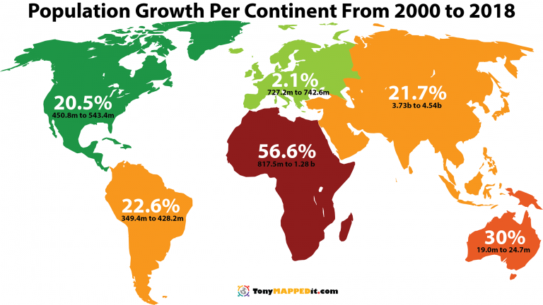 A população africana deverá saltar de 1,3 bilhão, no ano passado, para 4,5 bilhões, em 2100, fazendo com que o continente seja responsável por mais de 80% da expansão demográfica mundial no período. Esse aumento equivaleria a uma migração de todas as pessoas que viviam em 2017 em China, Índia, Estados Unidos e Brasil para a África.