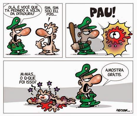 a) o personagem da charge que pede a volta da ditadura destoa frontalmente do padrão aferido na pesquisa;