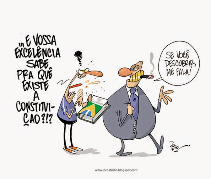 d) As duas charges apresentam conteúdos opostos: a primeira é contra a Carta Magna, enquanto a segunda é a favor.